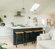 A detached 1930’s house with a large modern kitchen/family room extension with vaulted ceiling. Original floor boards throughout original part of house, open fire, log burner, three double bedrooms and new modern bathroom. Extension is a south facing space with modern shaker kitchen opening out onto a large orchard garden with a stream and stone built former pigsty.
